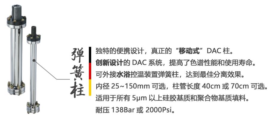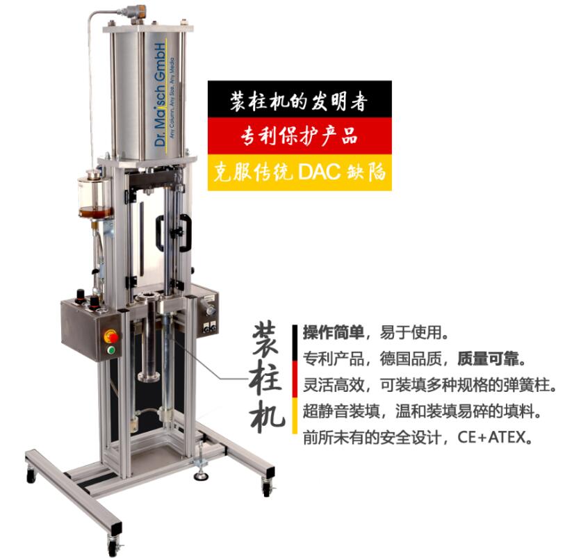 月旭科技D家代理的德国Dr. Maisch智选DAC(装柱机+弹簧柱),可以任意搭配25mm~70mm内径的弹簧柱,或者50mm~150mm内径的弹簧柱使用,一机多用,分离纯化的效率将得到成倍提高,堪称是DAC界的“变形金刚”。