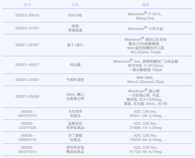 SPE柱:月旭Welchrom® P-SCX小柱,规格60mg/3mL。