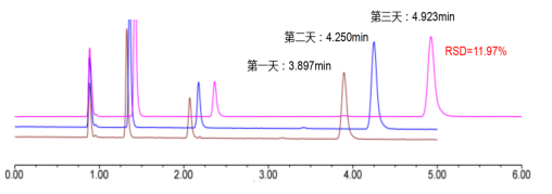 夏季气温高,大部分溶剂的挥发加剧,别小看溶剂挥发,有没有觉得RSD比之前要大?尤其是不盖盖的小伙伴们,不仅实验结果偏差较大,室内挥发的溶剂对我们的身体也有很大危害。某条件下溶剂瓶全敞口测试对比结果如下:
