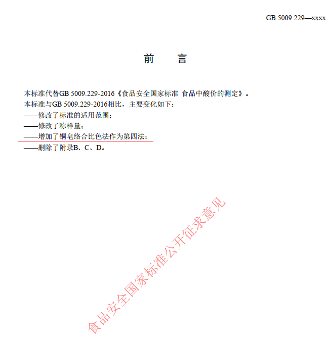 2023年2月13日,guo家卫生健康委员会食品安全标准与监测评估司官网发布相关公告(食标秘发〔2023〕2号),对《食品中亚硝酸盐限量》等38项更新制修订的食品安全guo家标准的征求意见稿,向全社会公示并征求意见。更新修订的《食品安全guo家标准 食品中酸价的测定》(GB 5009.229)也包括在内。